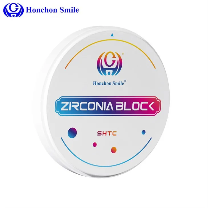 Zirconia in sẵn Smile của HONCHON là một nỗ lực thành công trong việc nâng cấp công nghệ. Màu SHT có đặc điểm tương tự như zirconia trắng SHT, nhưng không cần tô màu. Bạn có thể chọn các sắc thái khác nhau tùy theo nhu cầu của mình, giúp rút ngắn đáng kể thời gian làm răng. SHT-C Pucks Zirconia màu trong mờ siêu cao dành cho Hệ thống CADCAM thích hợp để tạo mão răng và cầu răng có đường viền đầy đủ.
